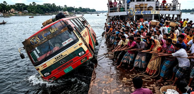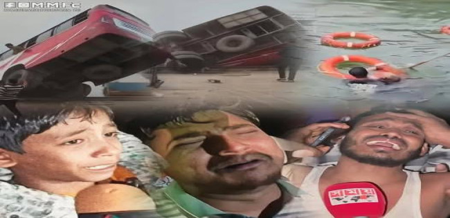 দৌলতদিয়ার ফেরি ঘাটে বাস ডুবি : ১১ জনকে জীবিত উদ্ধার, পাওয়া গেল ৪ মরদেহ : ৪০ জন পানির নীচে