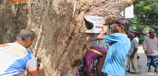 পরিবেশ রক্ষায় হিলি পৌরসভার উদ্যোগে, সড়কের গাছ থেকে সাইনবোর্ড ও পেরেক অপসারণে অভিযান