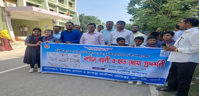 সাপাহারে বিশ্ব হাত ধোয়া দিবসে বর্ণাঢ্য র্যালি প্রদর্শনী