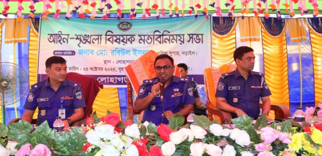 নড়াইলের লোহাগড়ায় আইনশৃঙ্খলা বিষয়ক মতবিনিময় সভায় বক্তব্য রাখছেন এসপি