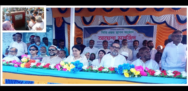 আত্রাইয়ে নিউইয়র্ক প্রবাসীর অর্থায়নে আয়েশা মসজিদের ভিত্তিপ্রস্তর স্থাপন