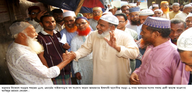 বগুড়ায় দাড়িপাল্লায় ভোট চেয়ে জামায়াত প্রার্থী সোহেলের গনসংযোগ