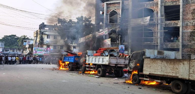ভোলায় হকারদের আগুণে পুড়লো সরকারী তিনটি গাড়ী