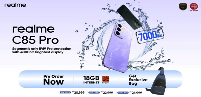 পানিতে ৬০ দিন টিকে থাকার সক্ষমতা ও উজ্জ্বলতম ডিসপ্লে নিয়ে রিয়েলমি সি৮৫ প্রো উন্মোচন