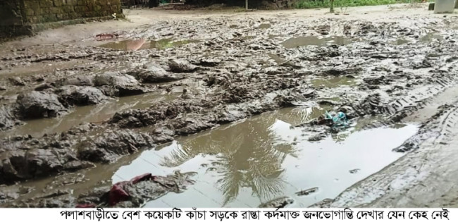 পলাশবাড়ীতে বেশ কয়েকটি কাঁচা সড়কে রাস্তা কর্দমাক্ত জনভোগান্তি দেখার যেন কেহ নেই