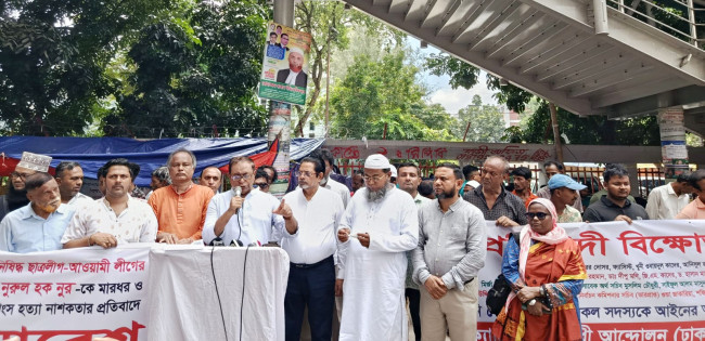 খুনি হাসিনার দোসরদের গ্রেফতারের দাবিতে ফ্যাসিবাদ বিরোধী আন্দোলনের বিক্ষোভ সমাবেশ