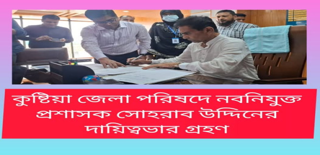 কুষ্টিয়া জেলা পরিষদের নবনিযুক্ত প্রশাসক অধ্যক্ষ সোহরাব উদ্দিনের দায়িত্ব গ্রহণ