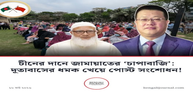 চীনা দানে জামায়াতের ‘ভণ্ডামি’: পলিটিক্যাল ক্রেডিট নিতে মিথ্যার আশ্রয়, দূতাবাসের ধমকে পোস্ট সংশোধন!