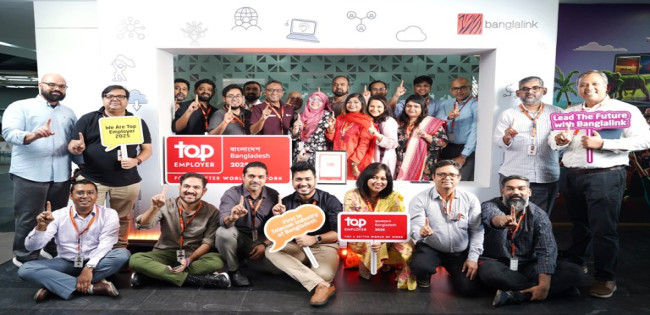 দেশের প্রথম টেলিকম অপারেটর হিসেবে ‘টপ এমপ্লয়ার ২০২৫’ স্বীকৃতি পেল বাংলালিংক